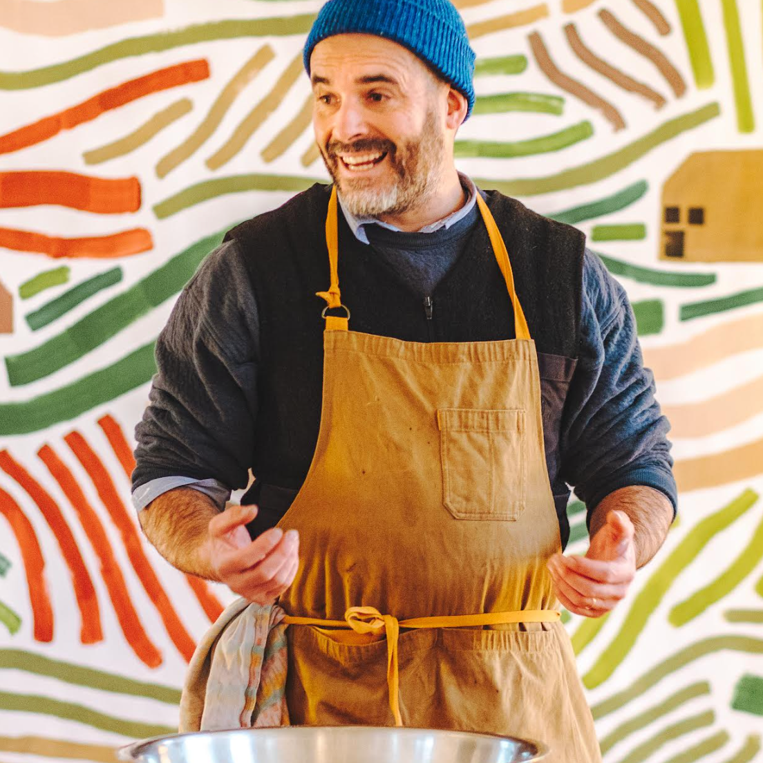 Tom Herbert baker, food equality champion, all round good person and founder of The Long Table, welcomes the group with a bread making demonstration.