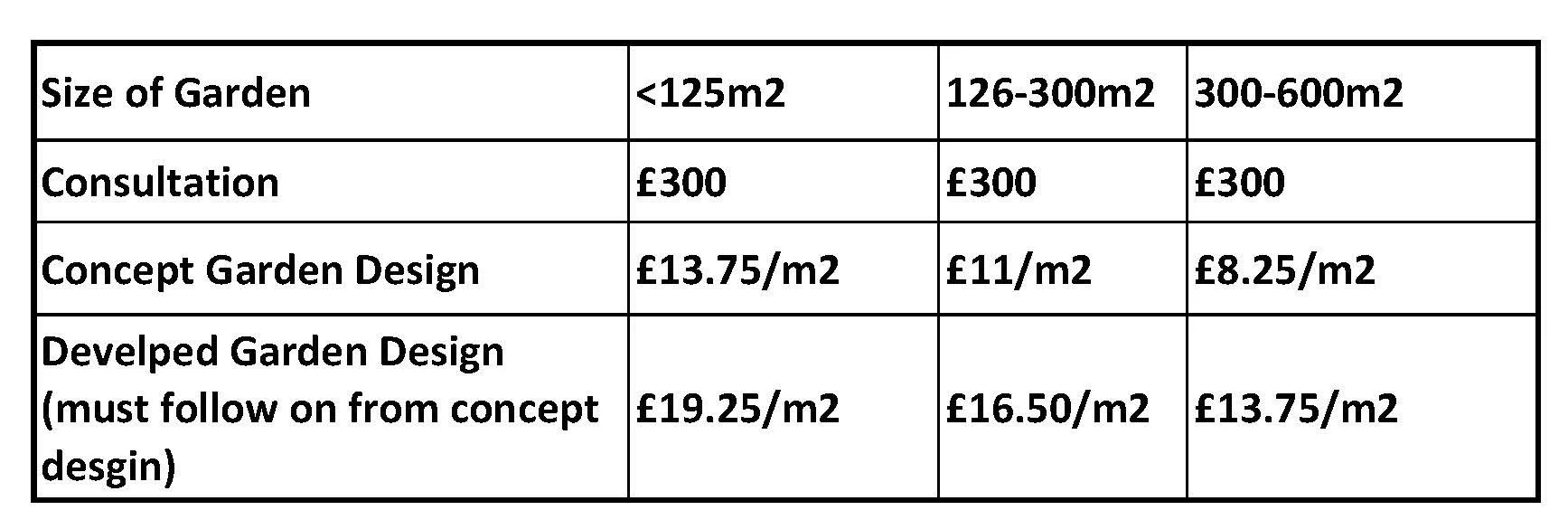 We like to keep things straightforward, so we base the cost of our design work on the size of your garden.